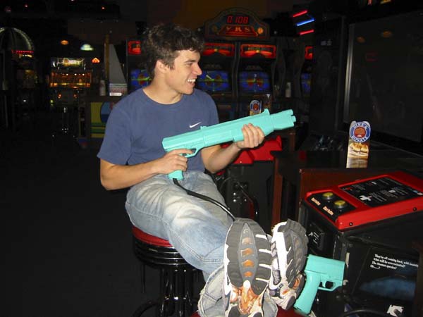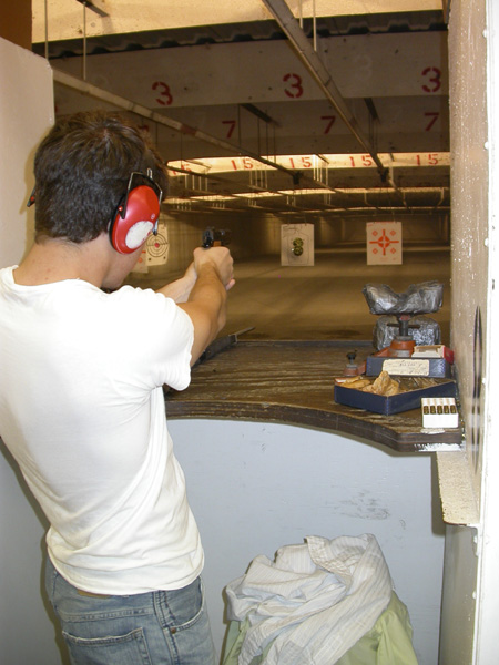 | Llewyn firing the rifle. We brought a rifle and handgun with