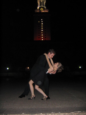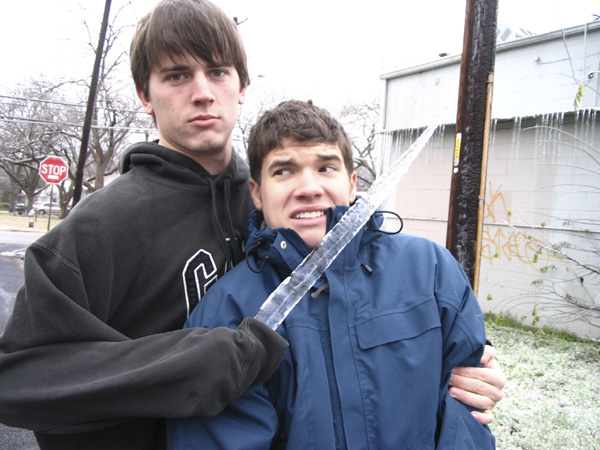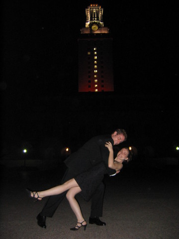 | Llewyn and Steven in front of the UT tower ice sculpture. |