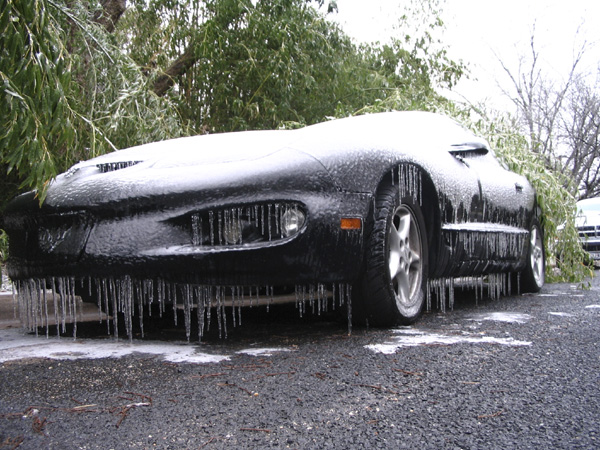 | Back in town, the ice storm was just as intense. Here's the Firebird after the ice storm (Nicholas has been borrowing