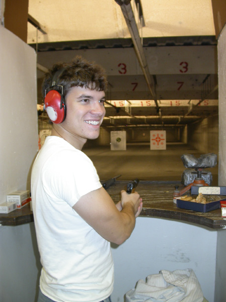 | Llewyn firing the rifle. We brought a rifle and handgun with